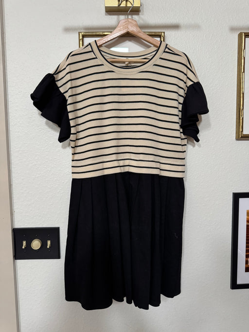 View full detailsBlack Mix Media Dress // Stripe-SALE